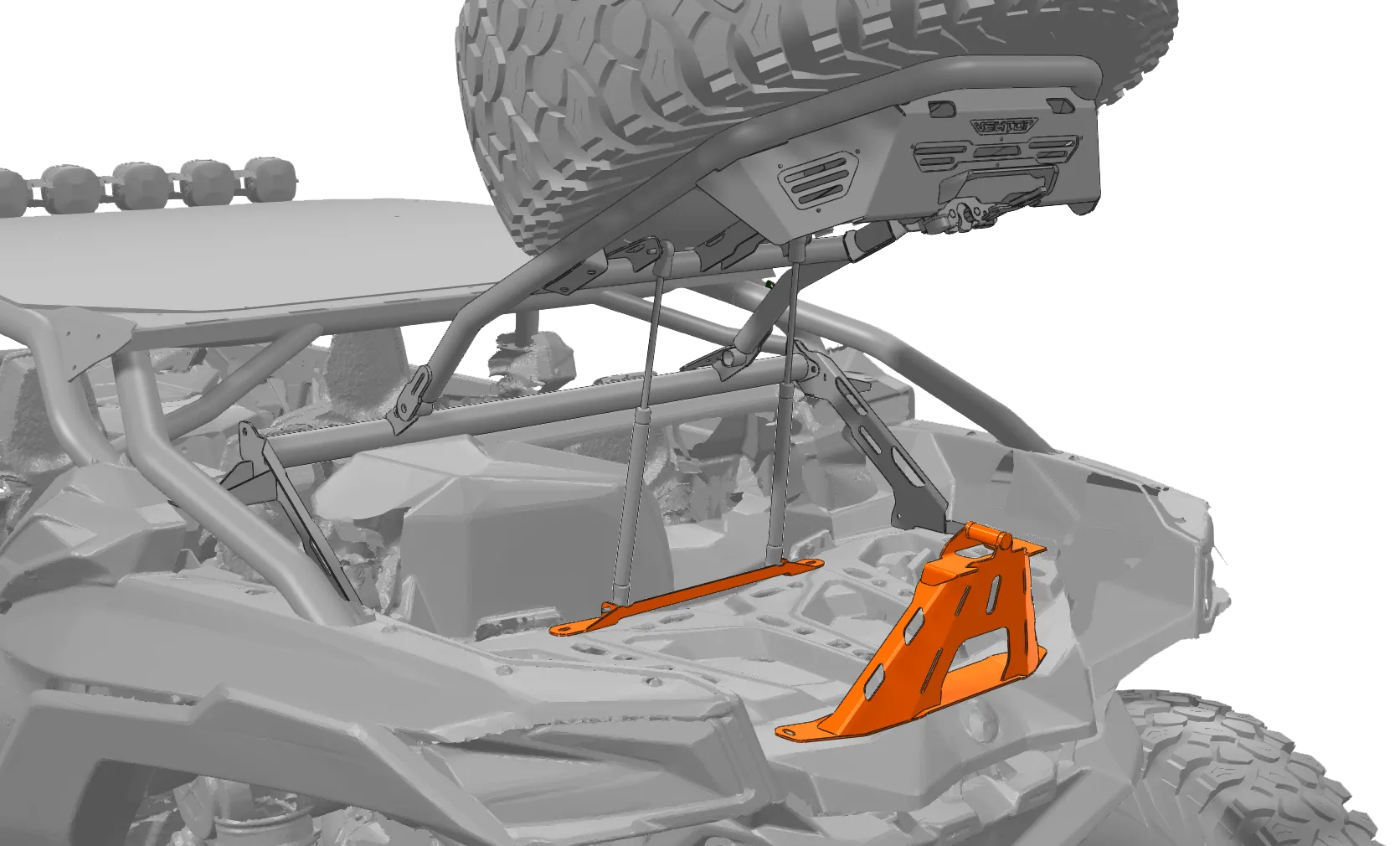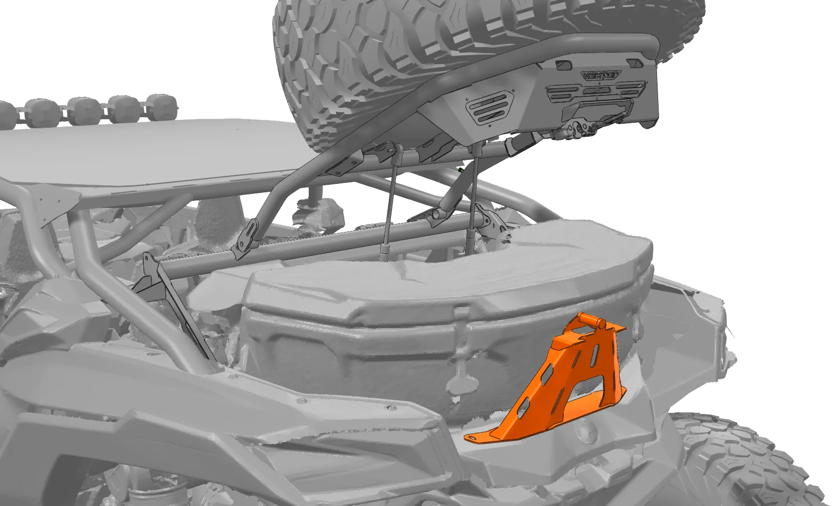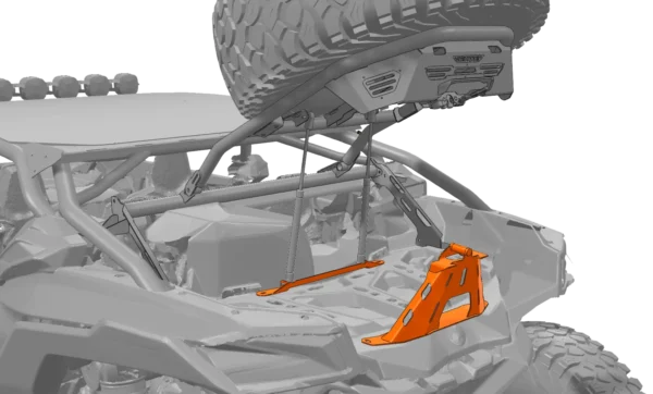 Este accesorio está diseñado para reposicionar la altura de cierre del porta llanta Ultra, lo que permite no solo ampliar el espacio de almacenamiento, sino también cumplir con su función principal: brindar el espacio necesario para instalar la hielera original de Can-Am. Disponible en color negro satinado.